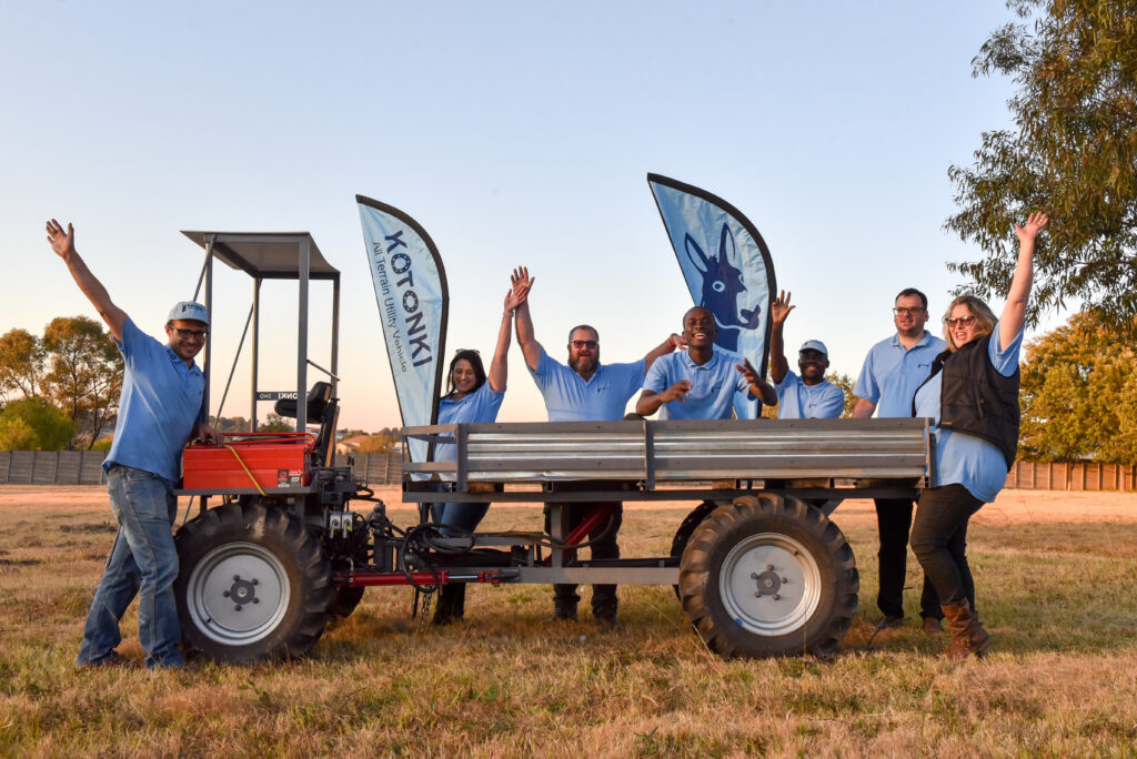 Prototype 2 was fabricated, in the new warehouse. The hydraulic system and components were outsourced to hydraulic experts. Prototype 2 was fondly named Kotonki. Kotonki is an abbreviation of "Koloi ya tonki" which means "donkey cart" in Setswana.